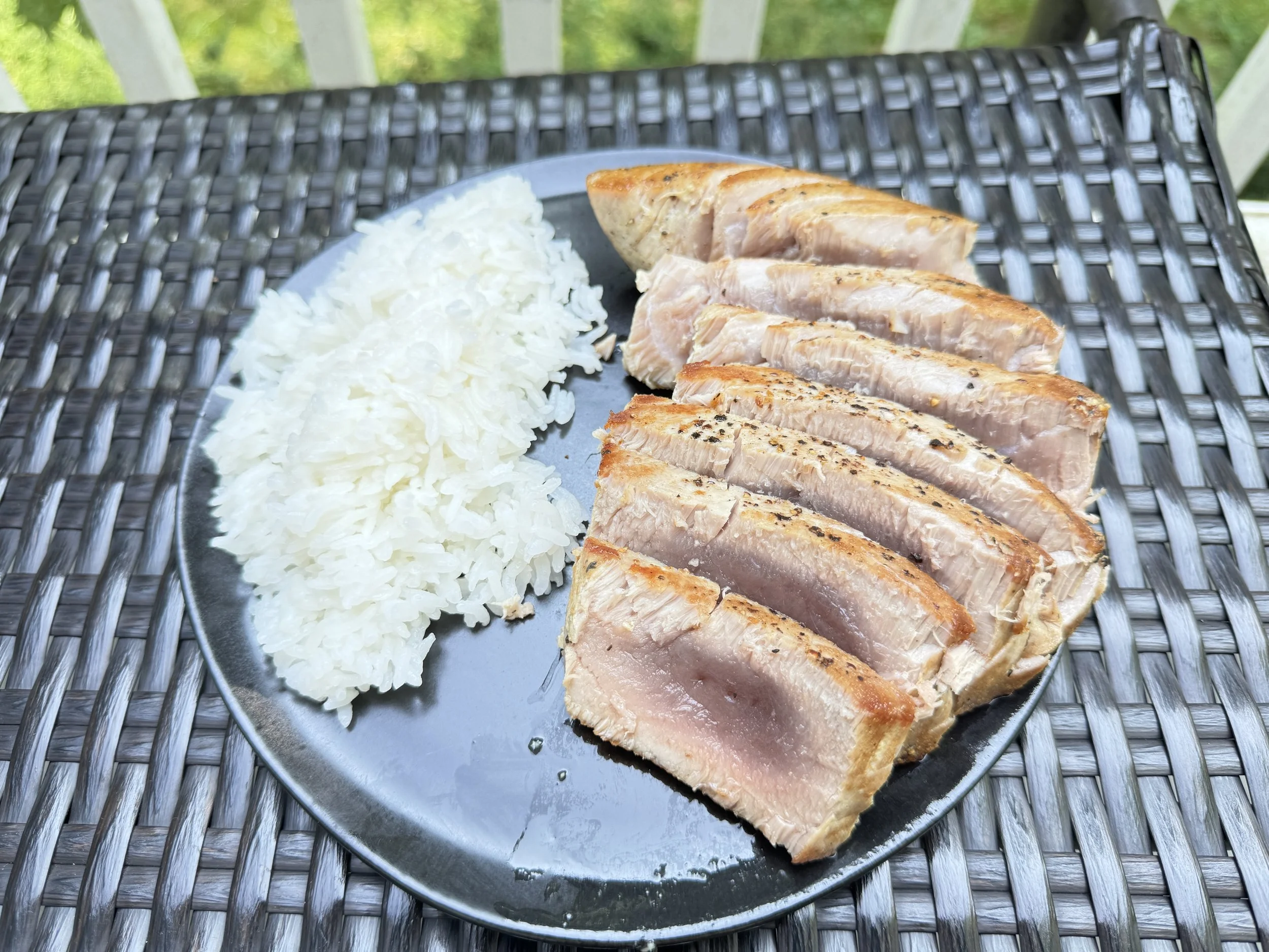 Rest & Serve: Let tuna rest for a few minutes. Serve over warm rice.
